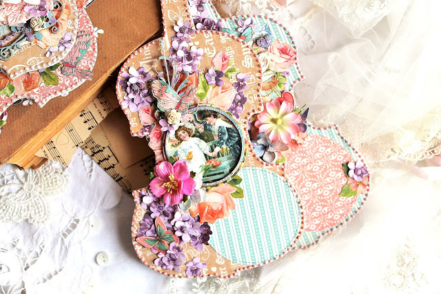 Мини альбом в форме скрипки для амурных фото, честно говоря я не фанат романтики и всей "чепухи" в виде медведей величиной с человеческий рост и плюшевых сердец, но наверное данный пример немного утрирован, ведь романтика и нежные чувства у нас в душе , а ни что человеческое мне не чуждо, поэтому растрогана великолепной палитрой коллекции Sweet Sentiments от G45 я создала этот альбом.